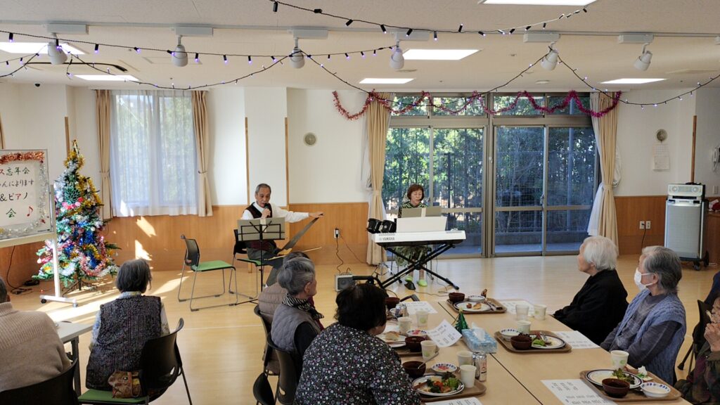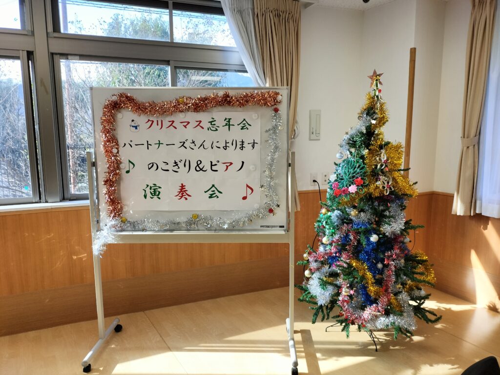 後半は、森の里で活動されているパートナーズ様に、演奏会をご披露頂きました。のこぎりを弦とし、弓でバイオリンを弾くような感じで奏でるそうです。🎹ピアノとの二重奏で「星に願いを」など、その他🎤歌もあり、皆さんとても喜ばれていました。この度は、ご参加頂き誠にありがとうございました。