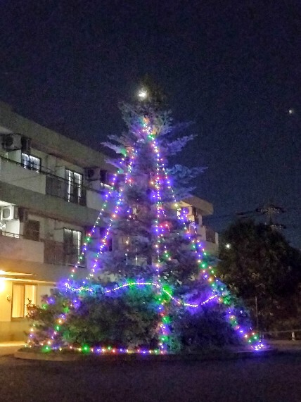 クリスマス1か月前ということで! 玄関前ローターリーのもみの木に ✨ピカピカ✨ イルミネーションの飾りつけが行われました🌟 毎日 16:30~20:00 まで点灯しております。