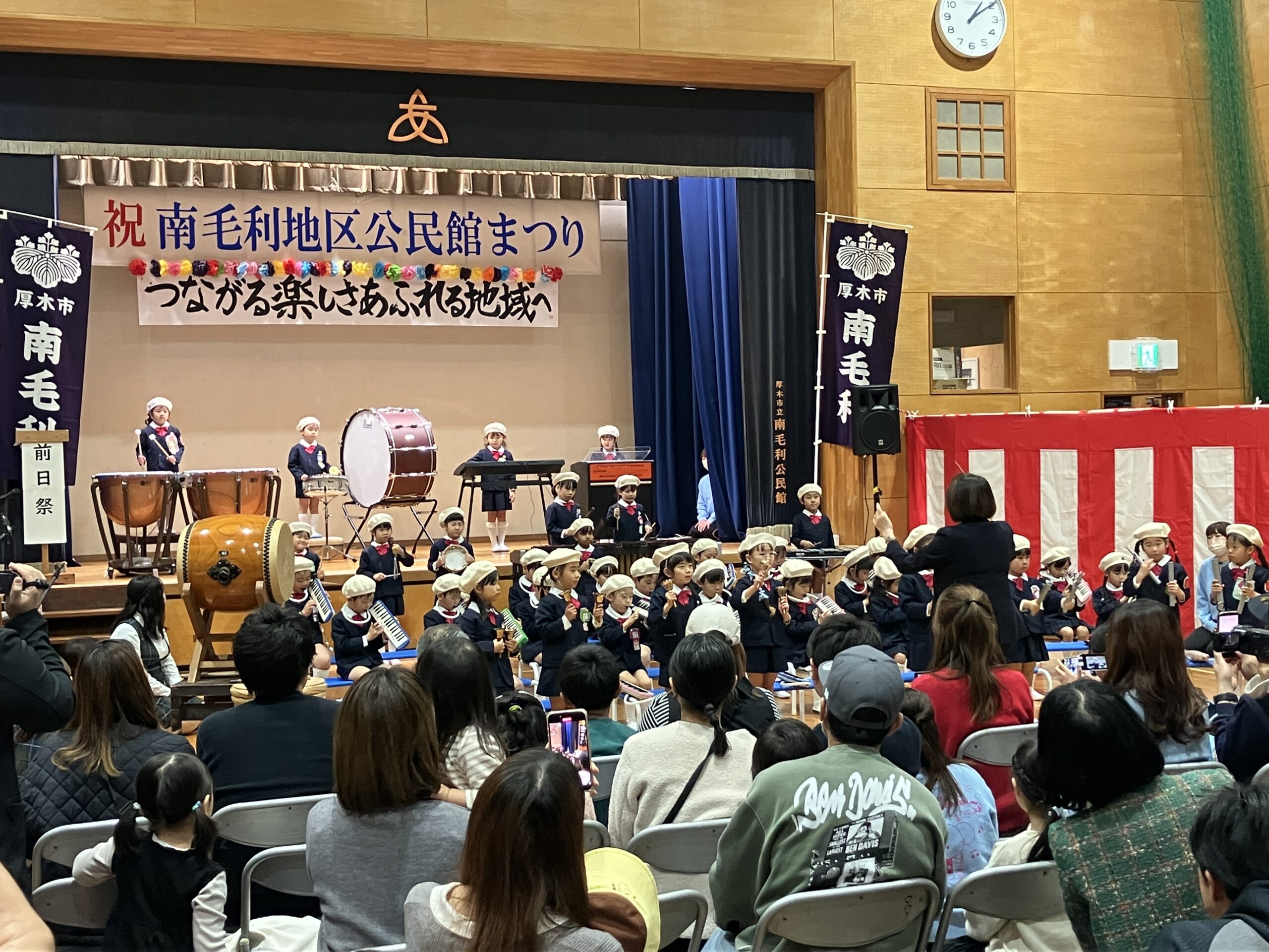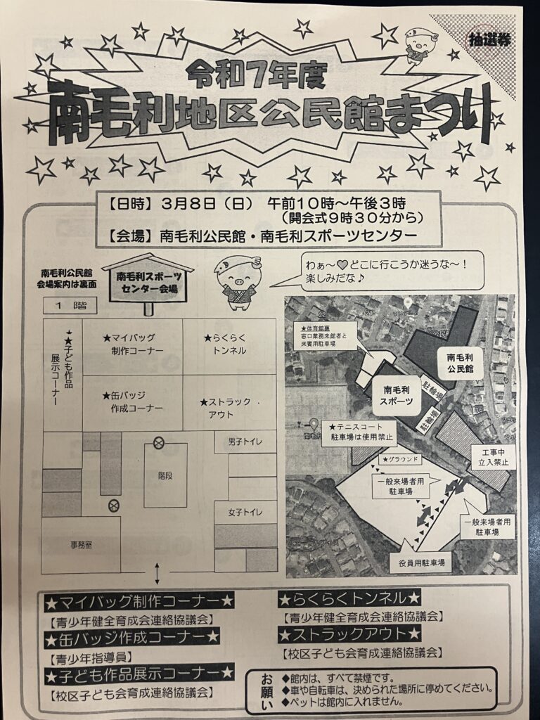 3月7日(土)と8日(日)、風はひんやりとしているものの日差しはポカポカと暖かい日でした。今年も地区の公民館まつりに行ってきました。7日の前日祭では幼稚園園児の合奏と合唱、保育園児によるダンスや組み立て体操が披露され、楽しんできました。また、翌8日は芸能発表や作品展示、模擬店などがありとても賑わっていました。