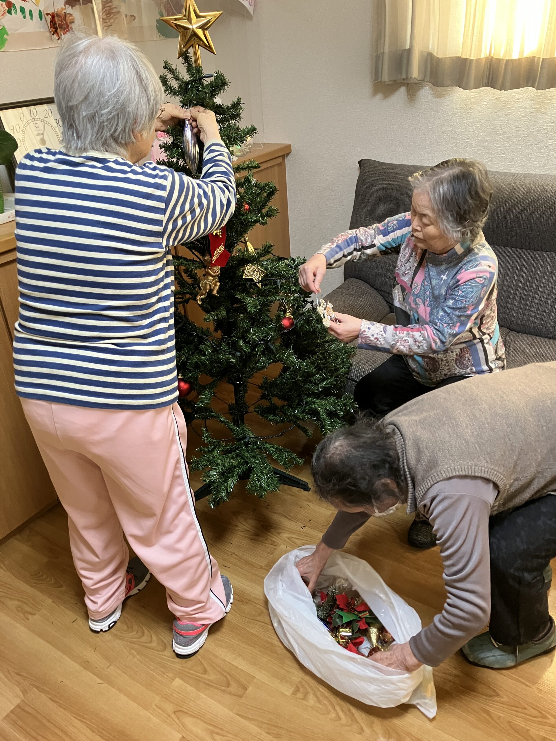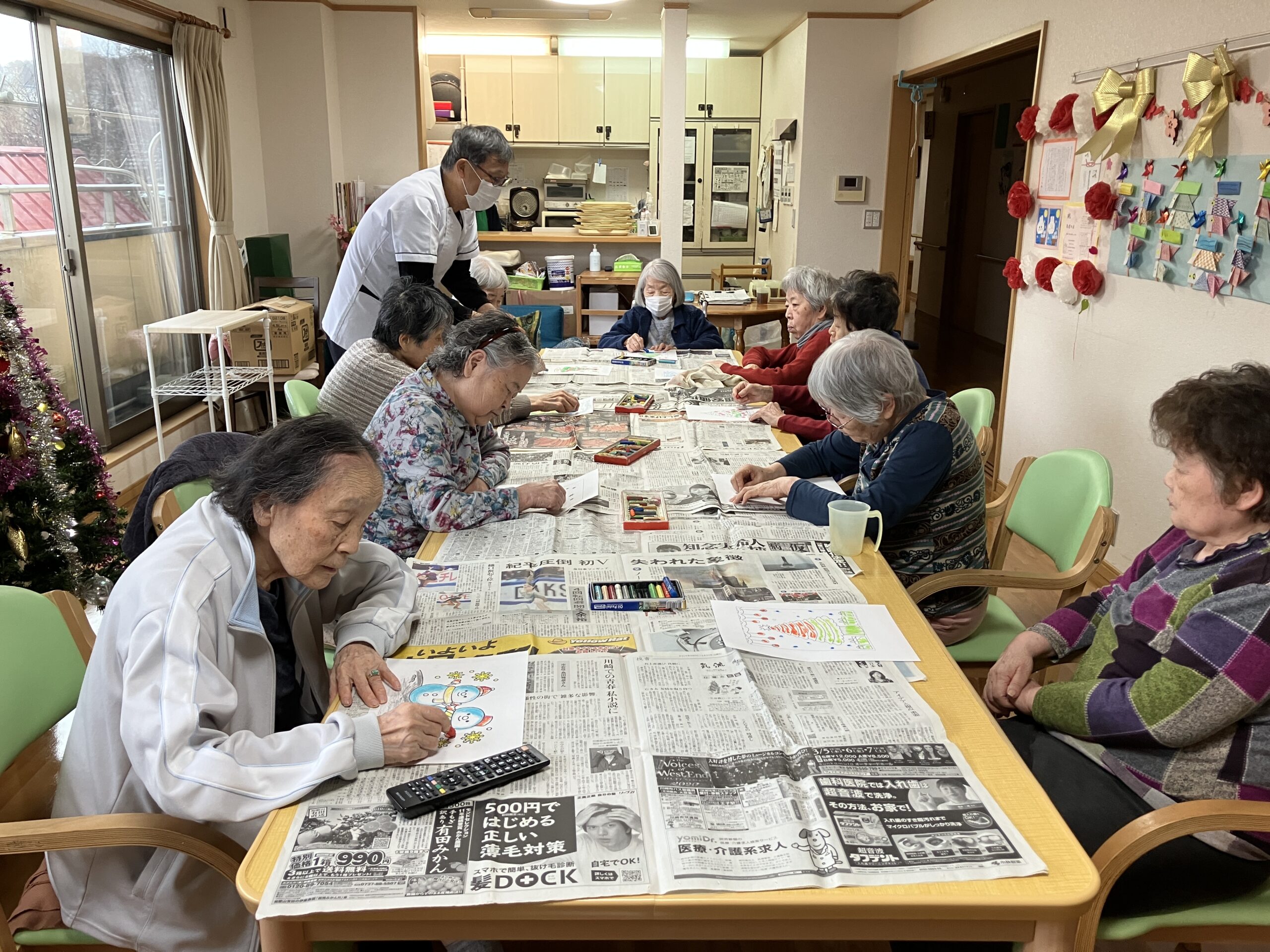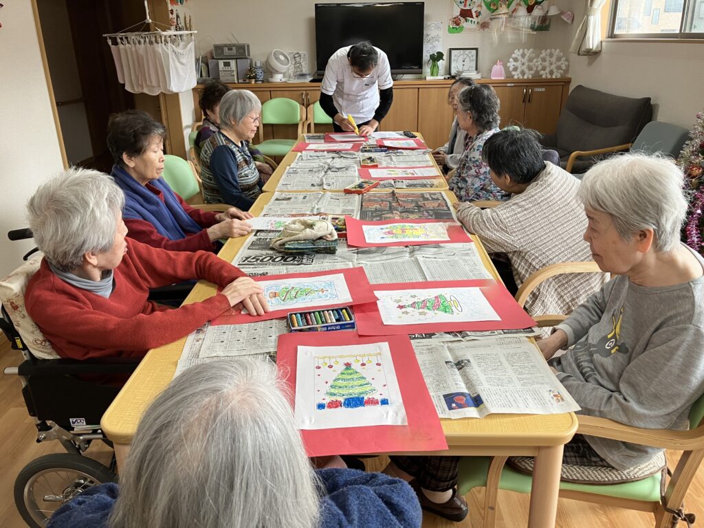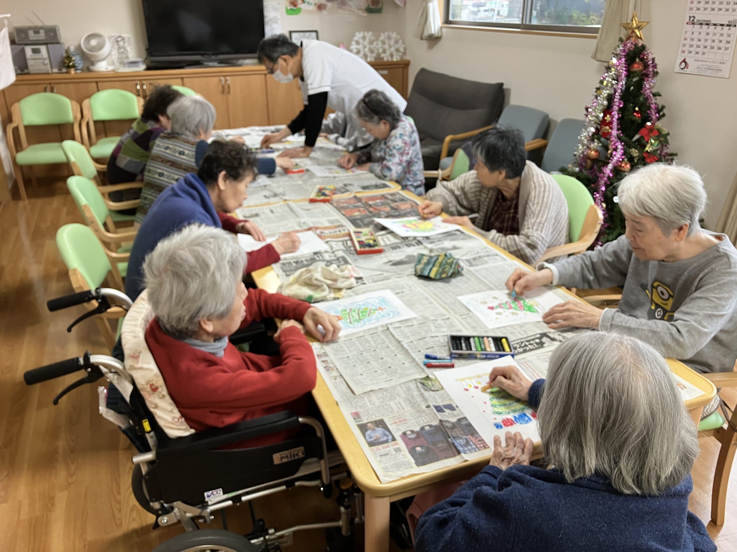 12月14日(日)落合医院:片山先生の指導による臨床絵画が行われました。今回はクリスマスが近いことからクレパスを使ってクリスマスのぬり絵を行いました。クリスマスらしく色鮮やかなぬり絵が描けました。また、クリスマスツリーの飾り付けも行いました。