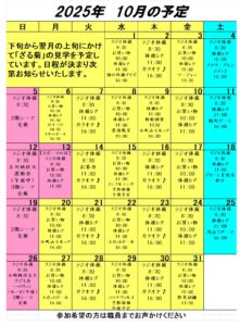 【小町山グリーンホーム】~10月イベントカレンダー~